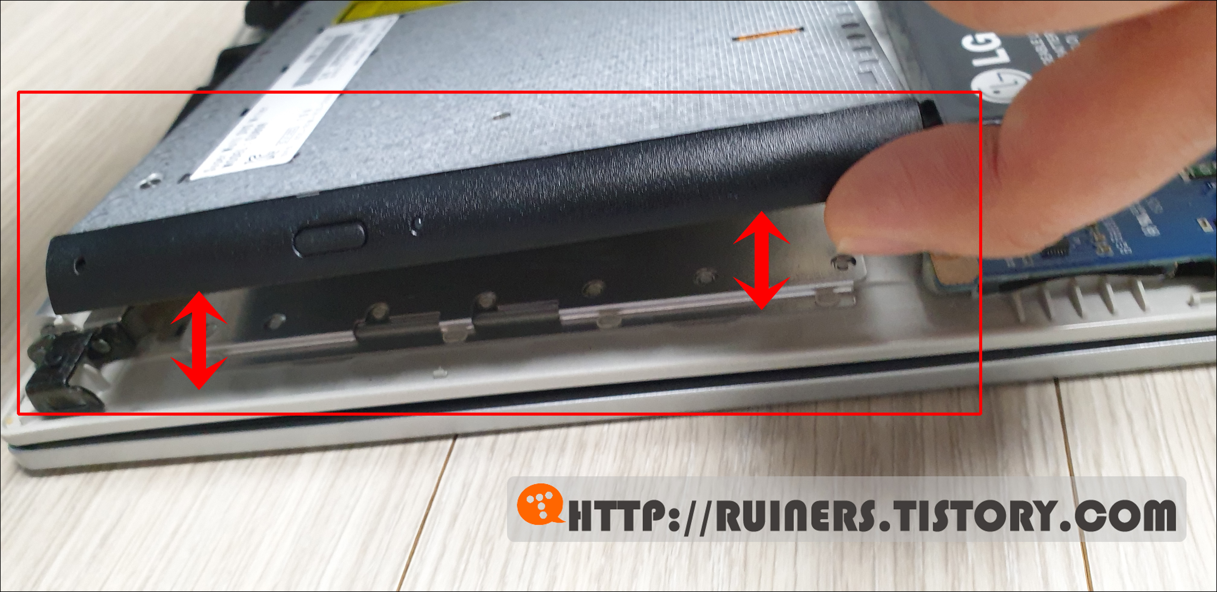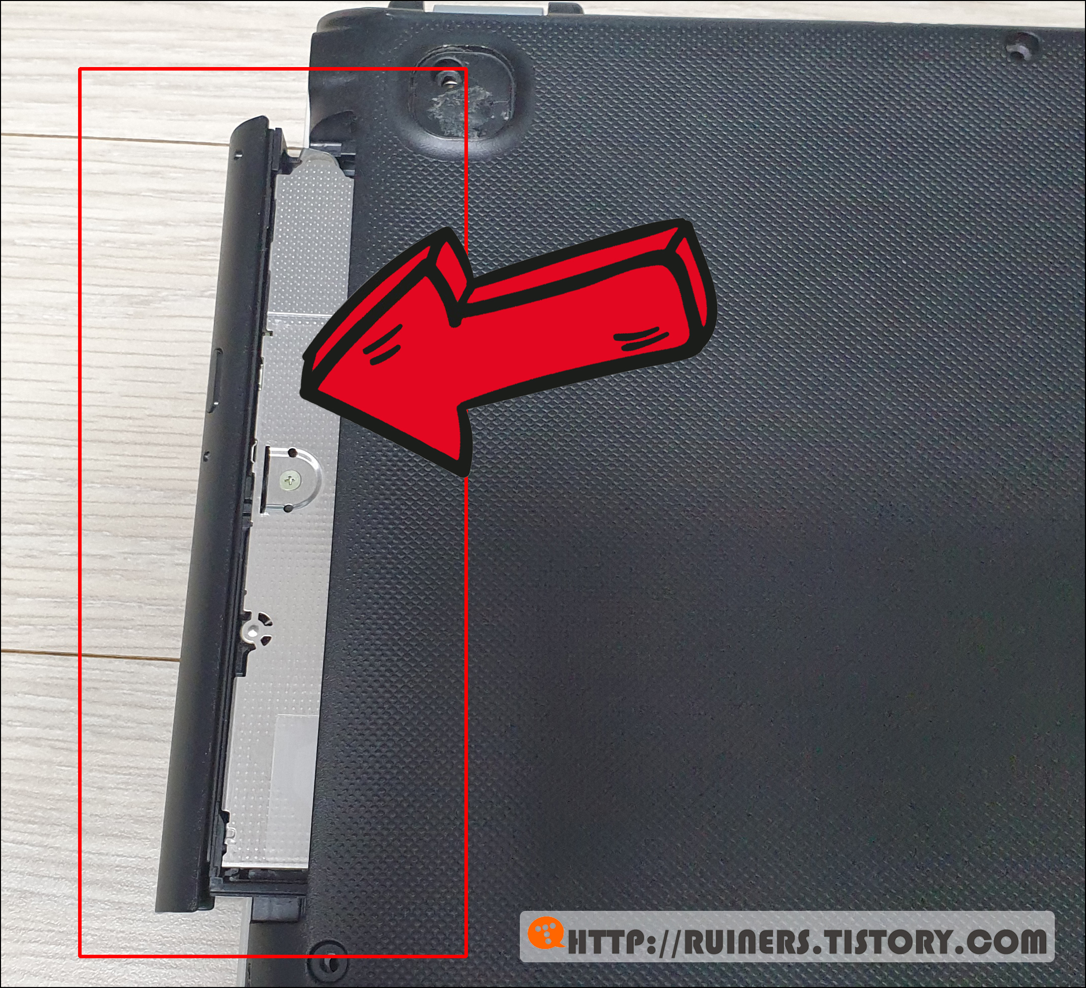 CD롬 부분도 아래처럼 살짝 들리는 현상이 있어,