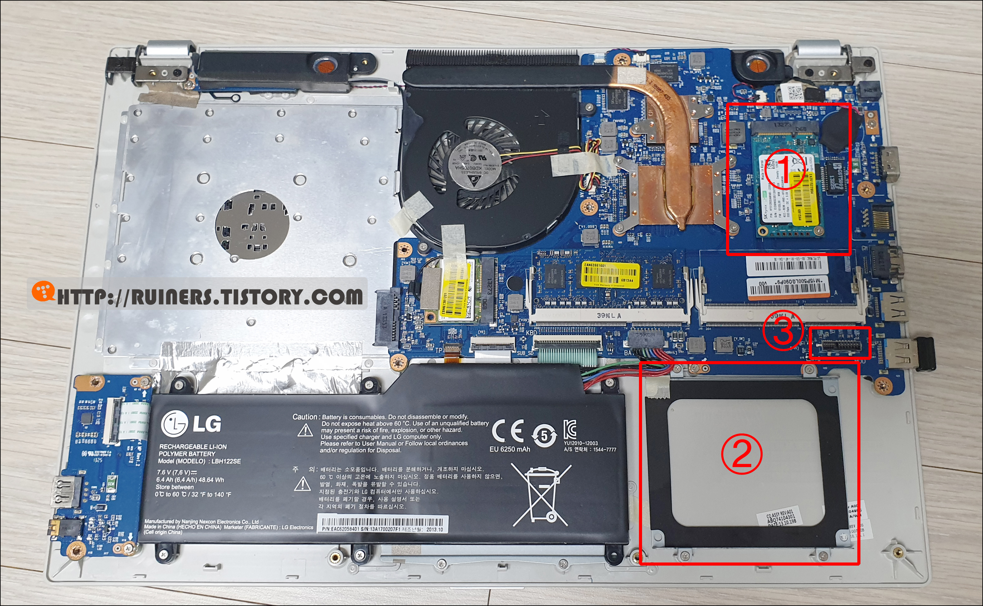 하부 케이스 분리 후 노트북의 모습은 아래와 같습니다.