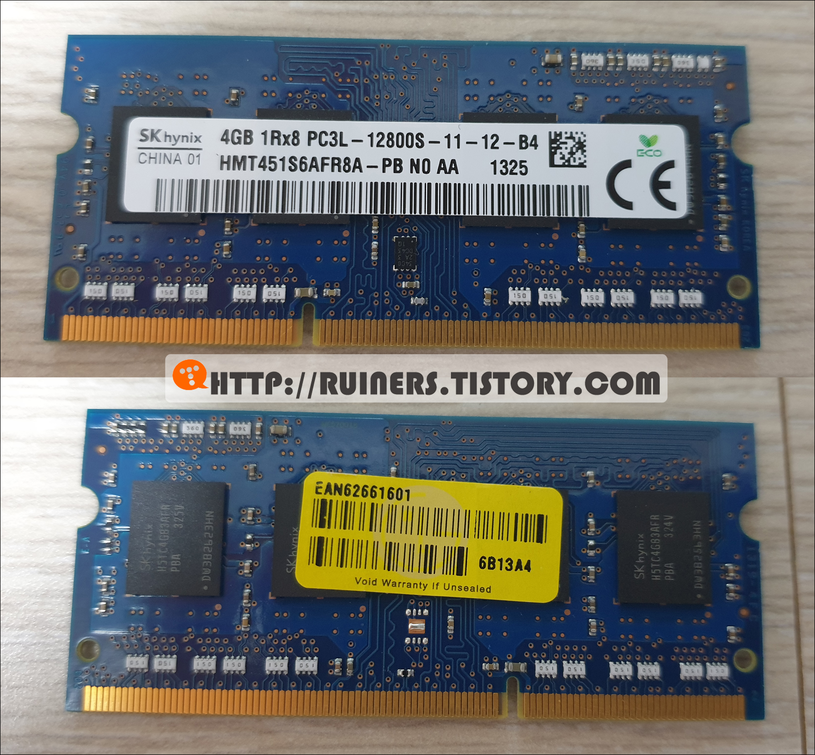 PC3L 12800S 4GB 저전력 제품이 장착되어 있었습니다.