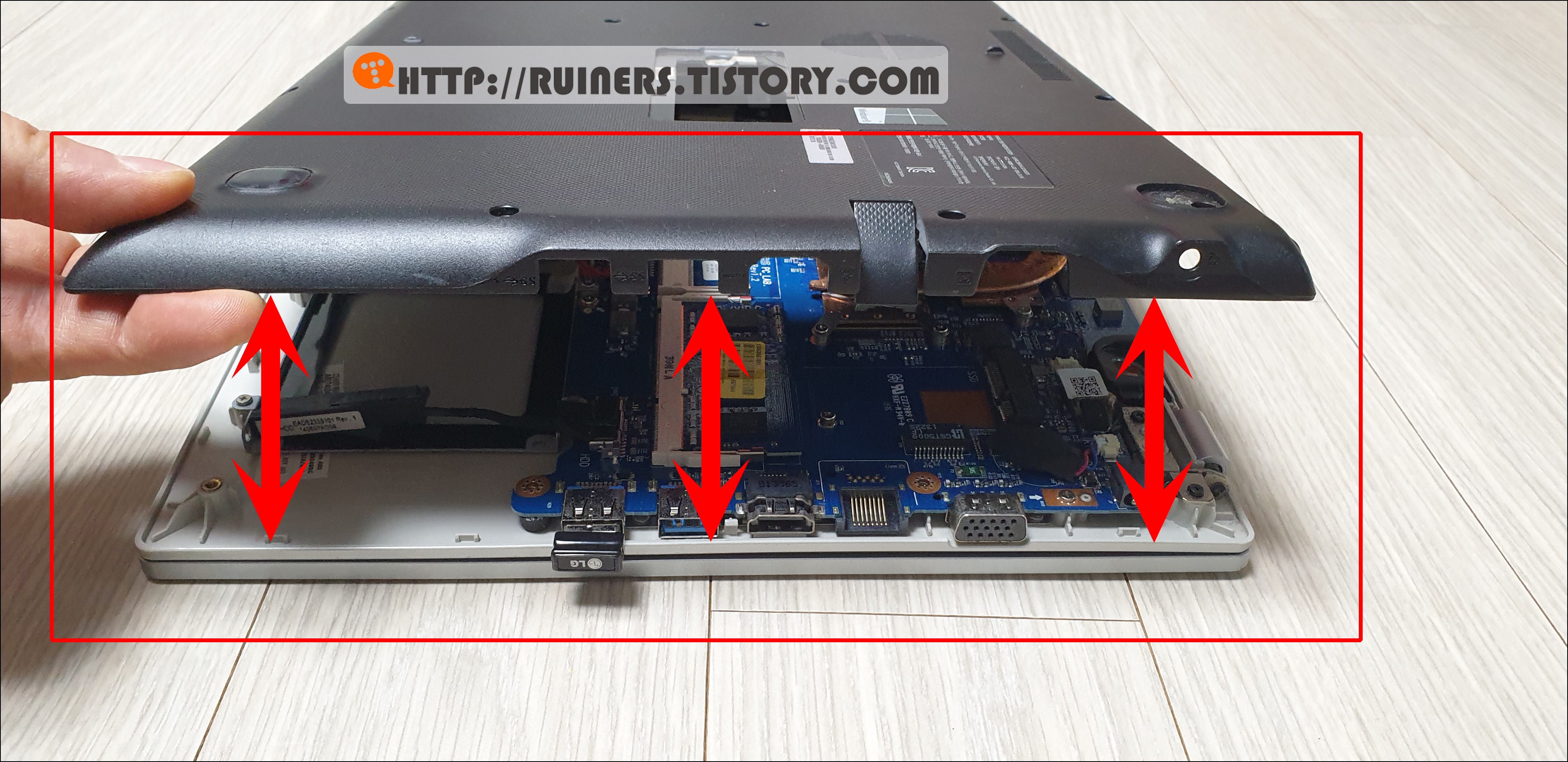 그 이유는 위처럼 하부 케이스를 들어 올릴 때,