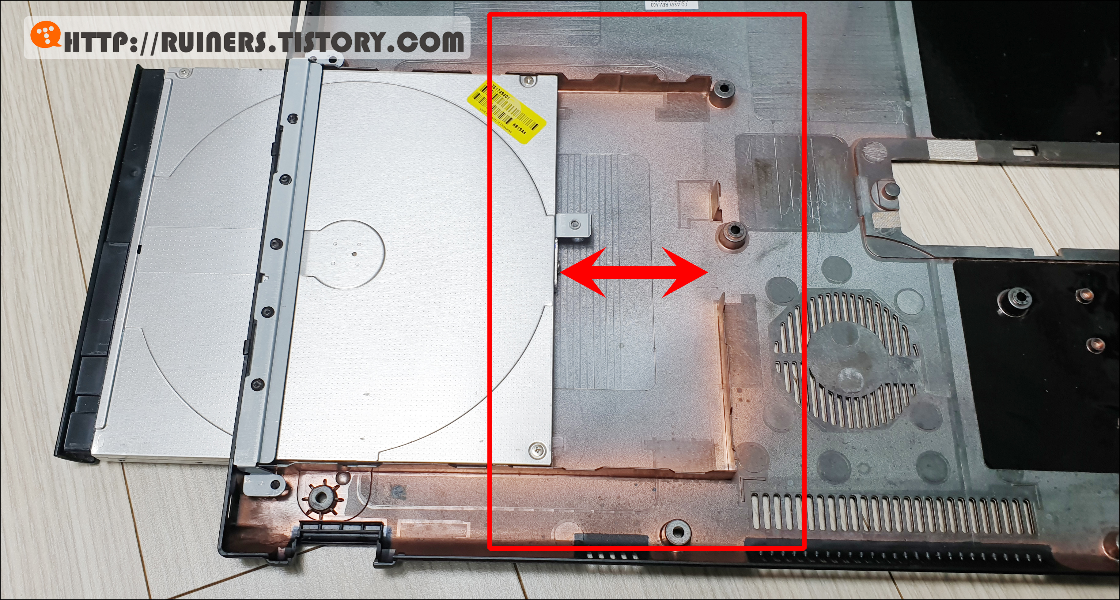 만약, 하부 케이스를 결합 전부터 CD롬을 밀어 공백이 없이