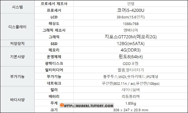 노트북에 대한 상세 사양은 아래와 같습니다.
