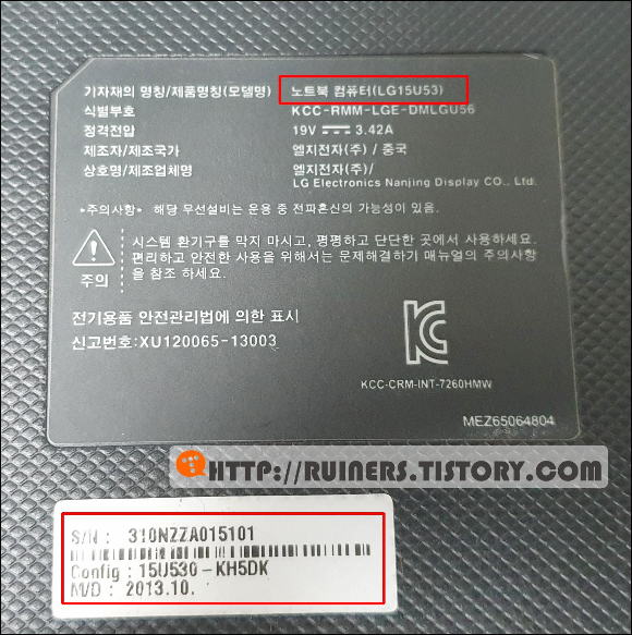 그리고 뒷면을 보면 아래와 같이 모델명 스티커가 붙어 있습니다.