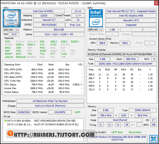 더 자세히 알고 싶다면 "HWinFO 프로그램" 을 사용하여 확인하시면 됩니다.