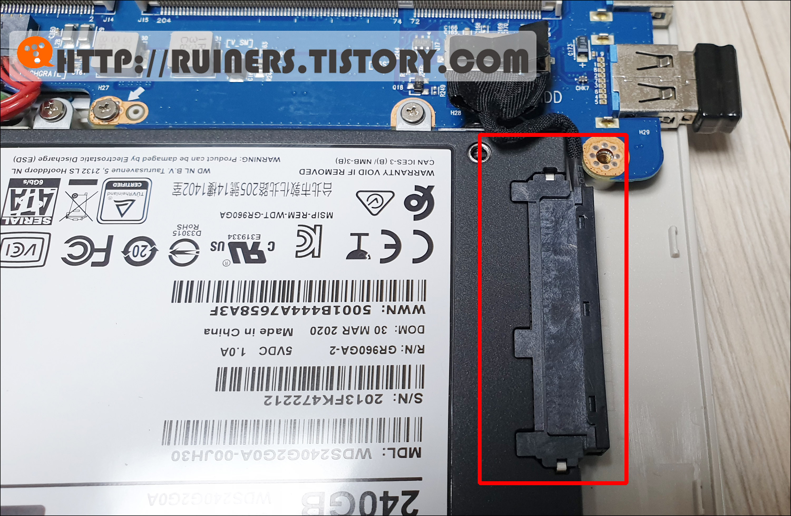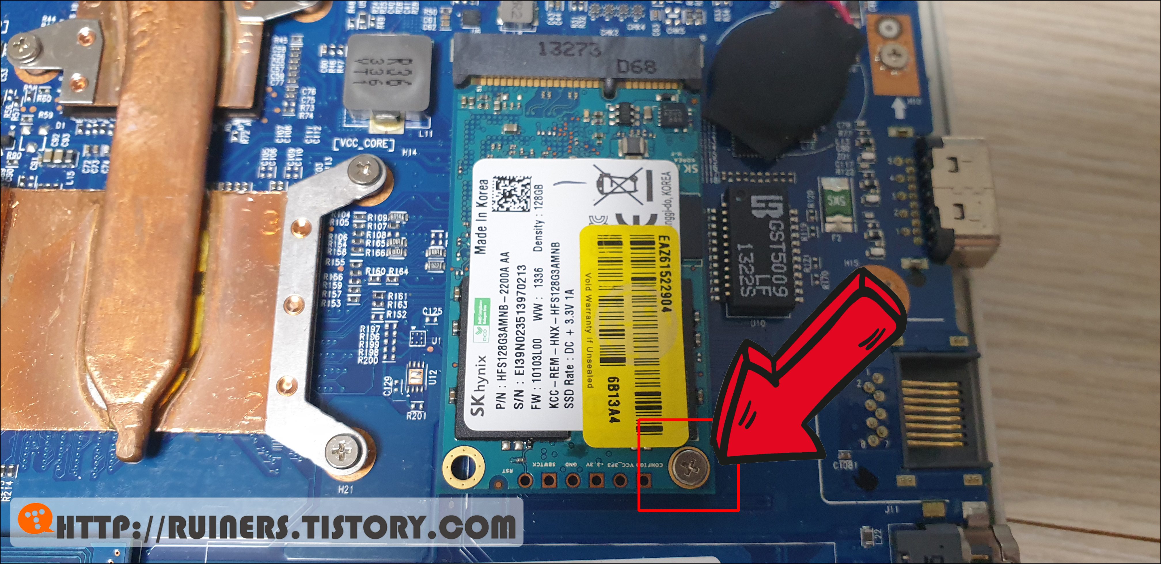 여기서 SSD가 설치된 방향을 잘 확인해주시기 바랍니다.