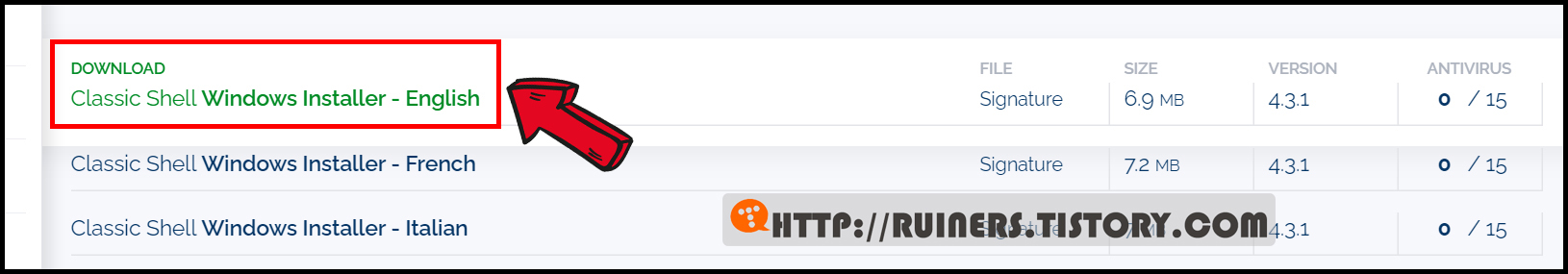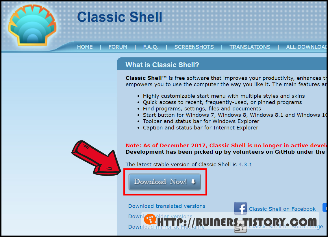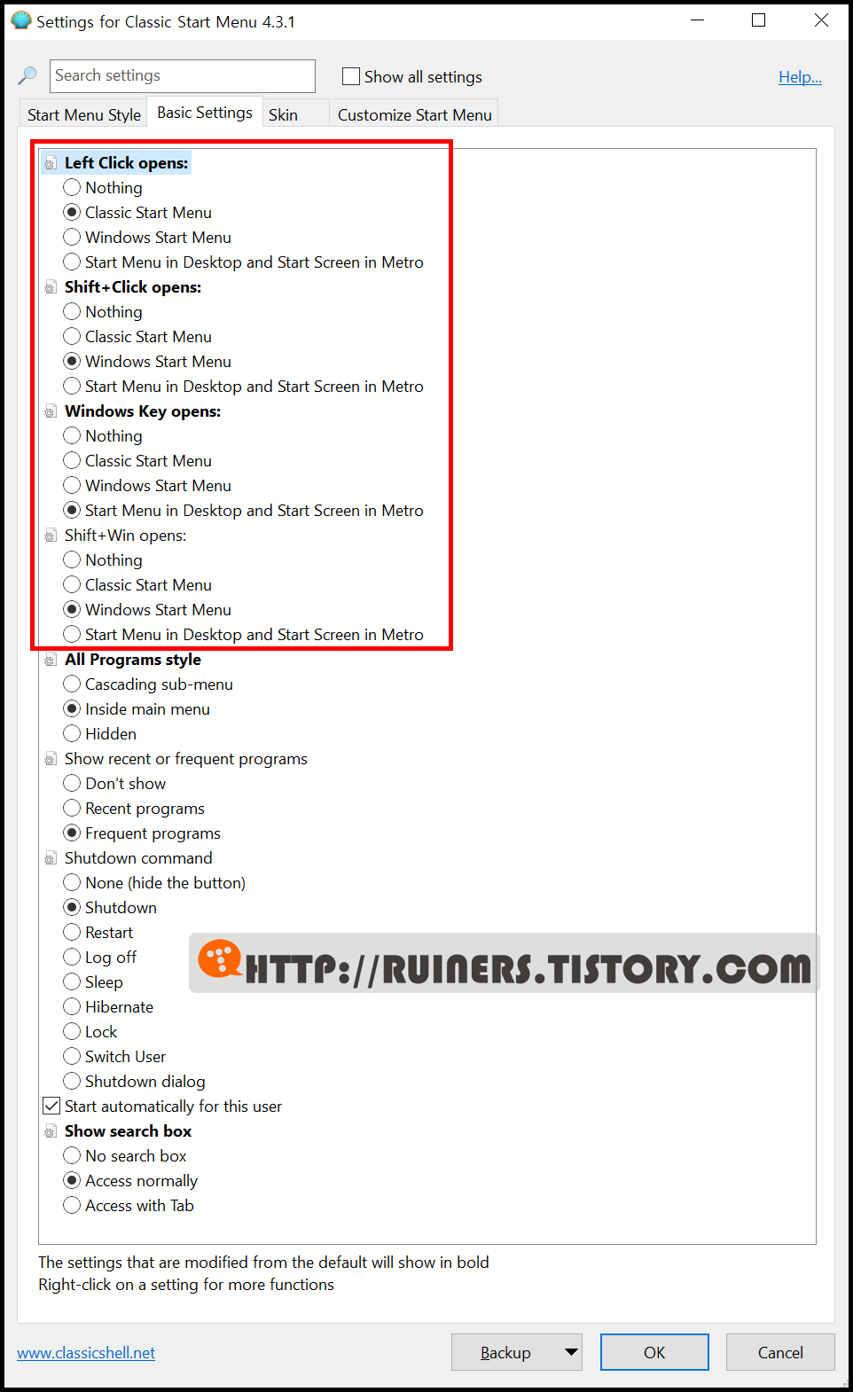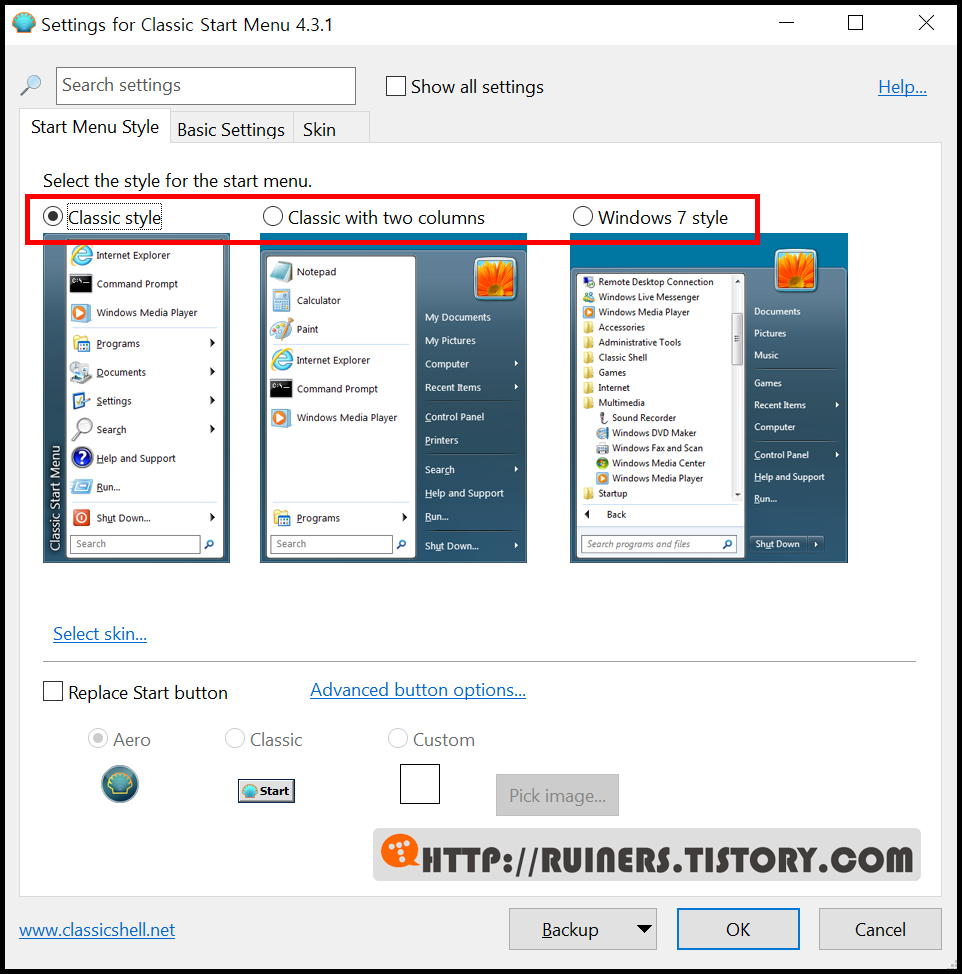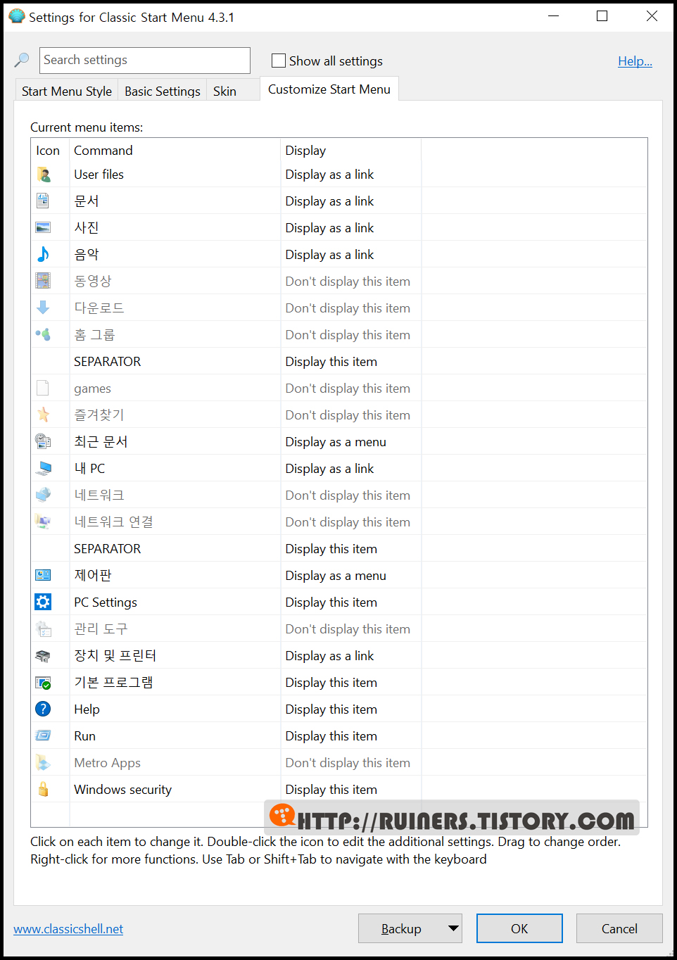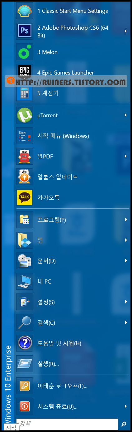 프로그램은 클래식 쉘 (Classic Shell)을 사용합니다.
