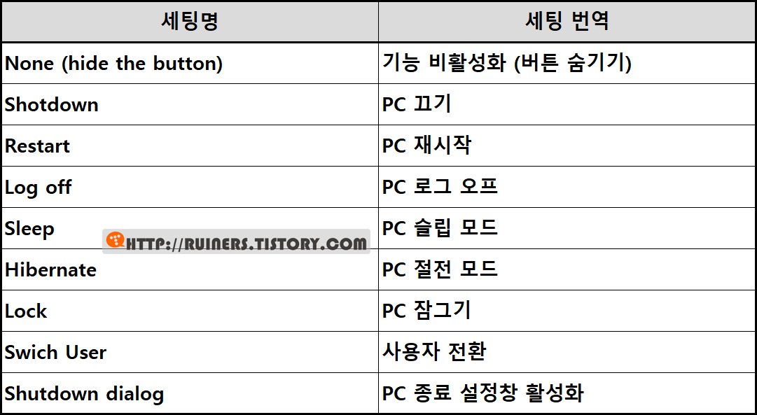 위 사진의 붉은색 테두리는 버튼에 따른 기능인데, 그 기능이 중복인지라 아래 표를 참고하시면 됩니다.