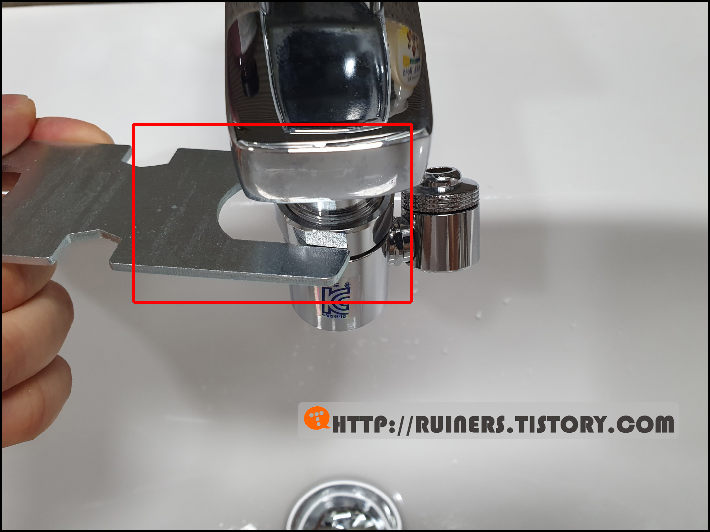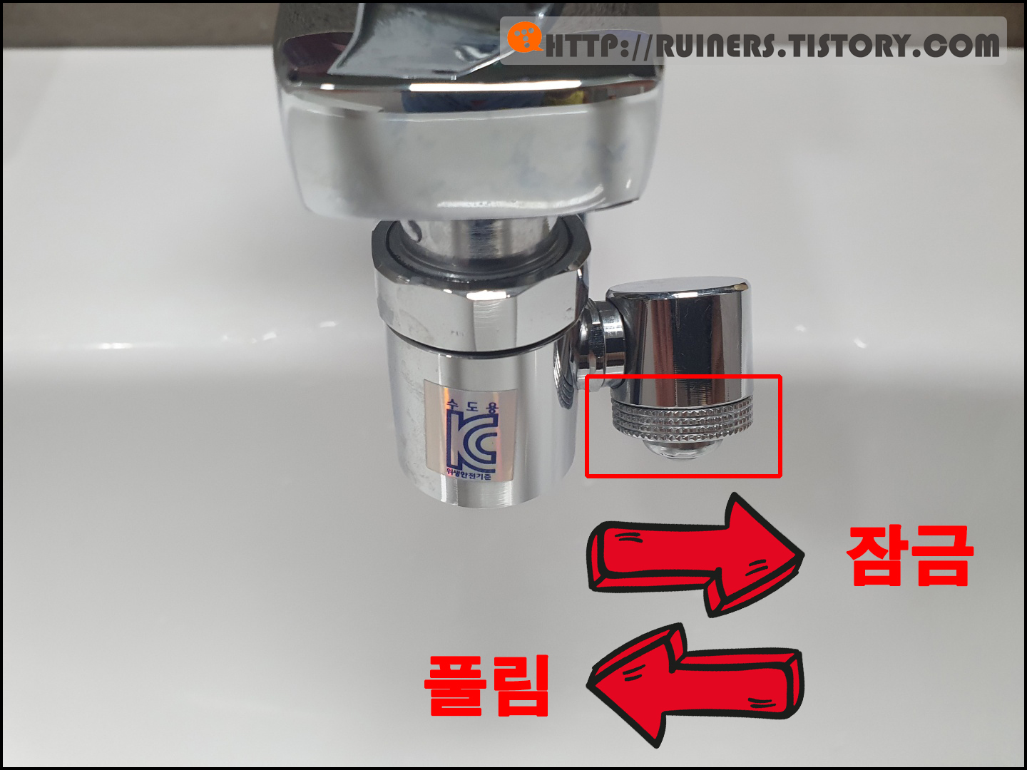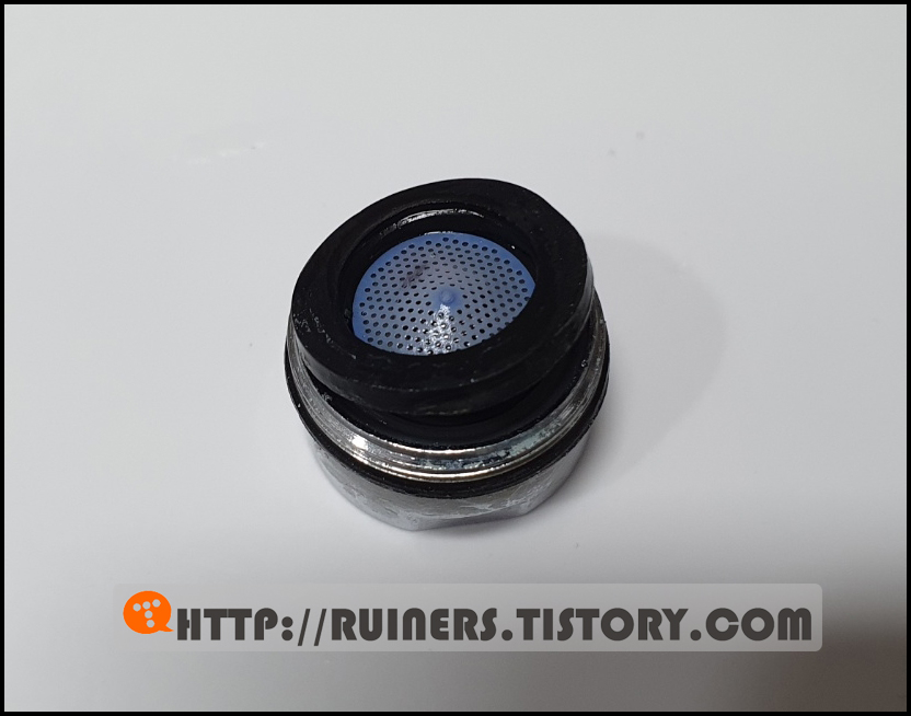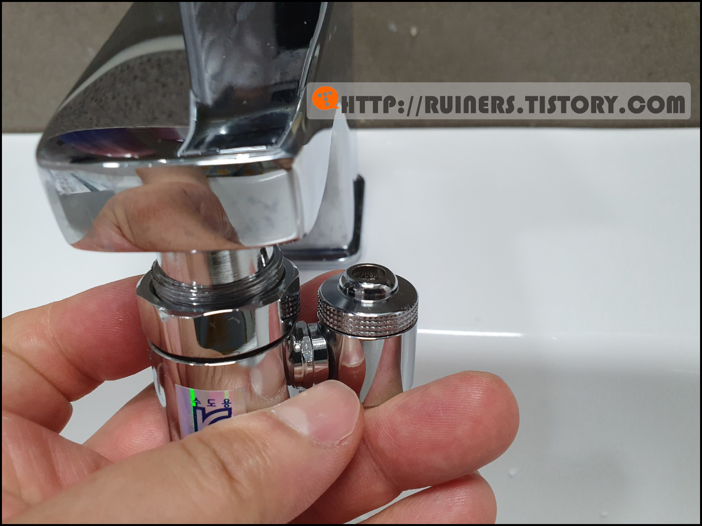 ② 기존 수전에 연결하는 부분은 필터가 들어가지 않는 방향으로, 고무링을 위에 두고 설치 진행