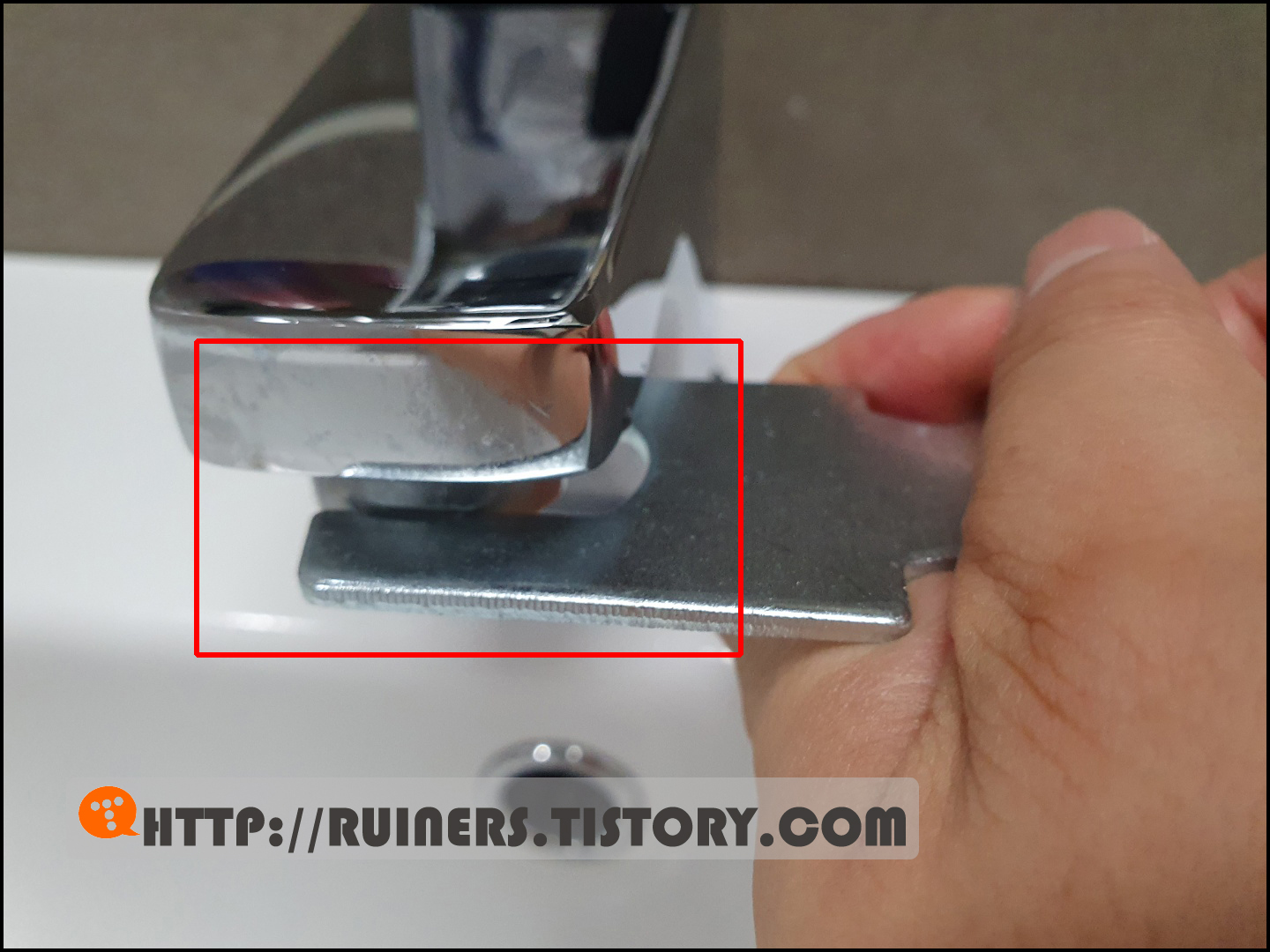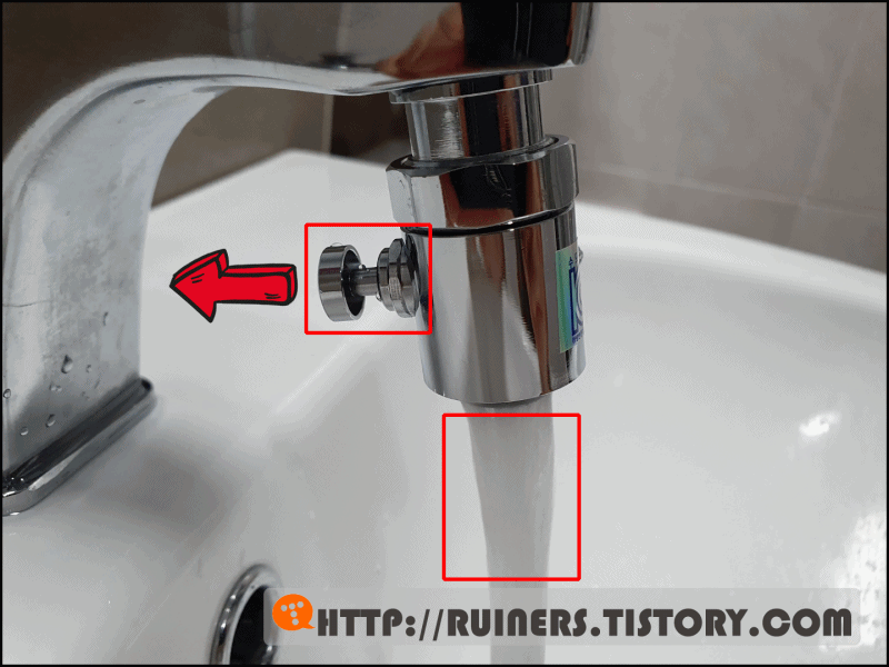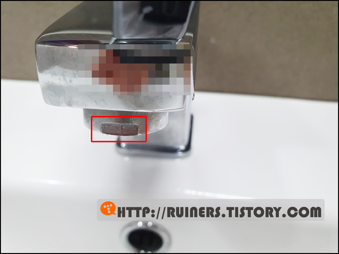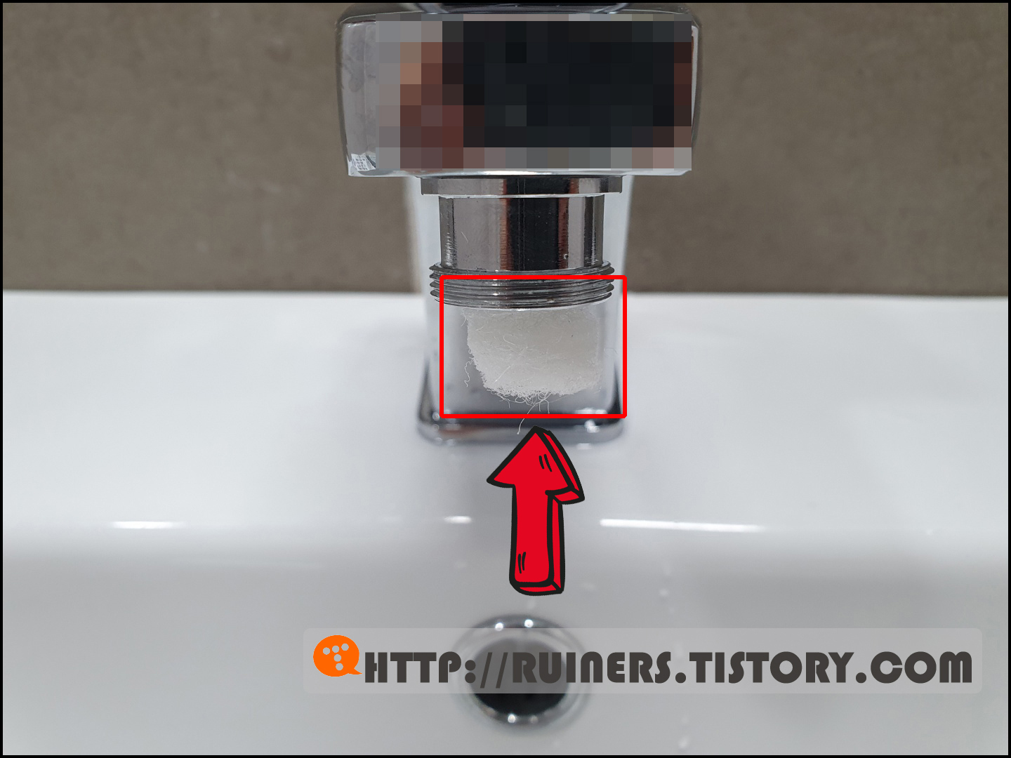 ② 기존 수전에 연결하는 부분은 필터가 들어가지 않는 방향으로, 고무링을 위에 두고 설치 진행