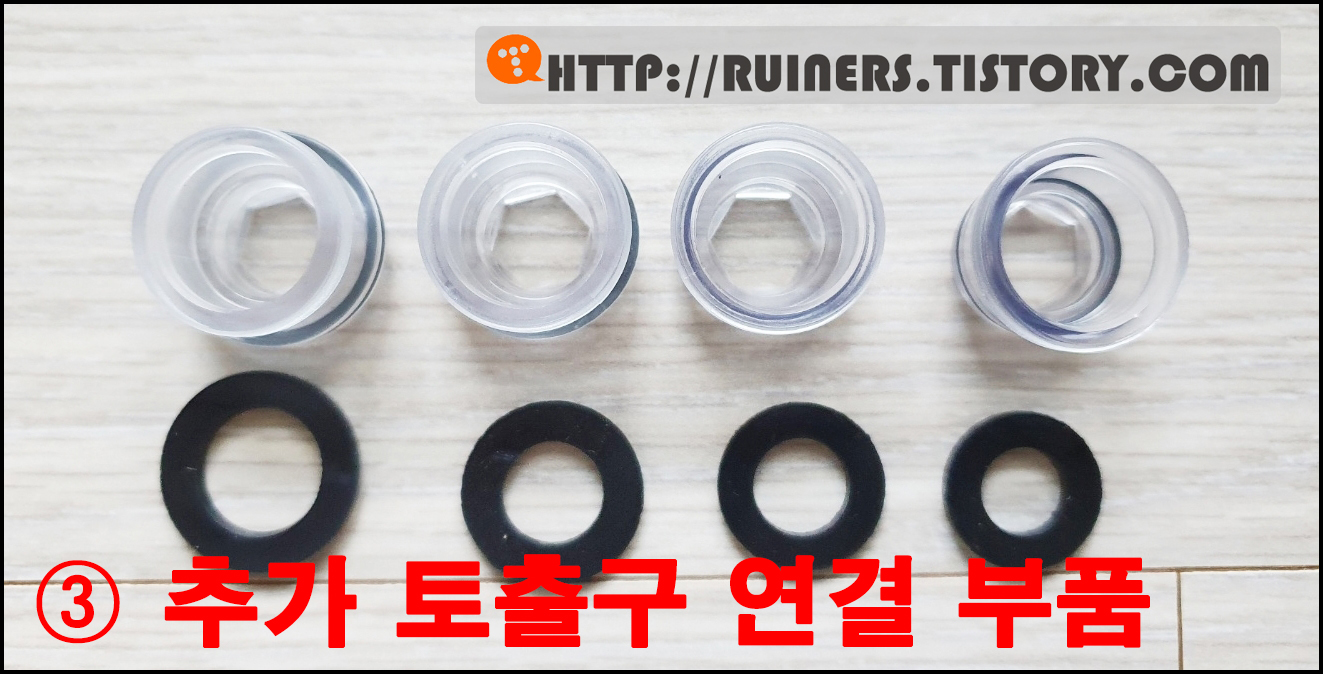 ※ "③번 추가 토출구 연결부품"은 플라스틱 재질로 본품의 부품보다 내구성이 약하기 때문에, 본품의 부품이 본인의 토출구와 크기가 맞는게 제일 좋은것 같습니다.