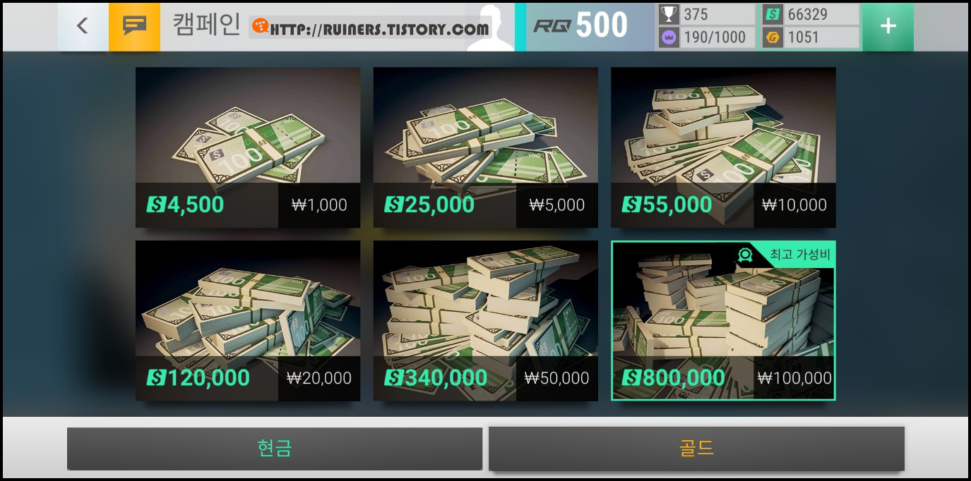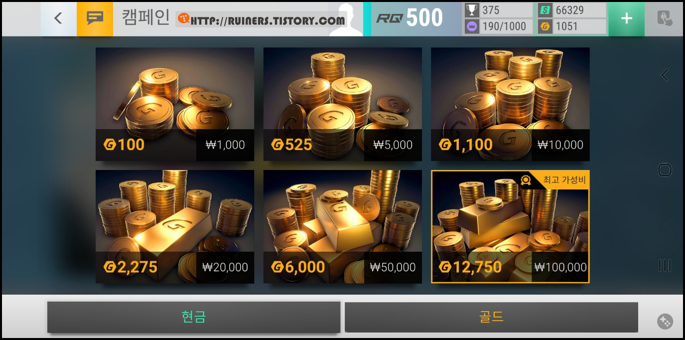 현질을 통해서 "현금"과 "골드"를 추가 구매할 수 있습니다~!!