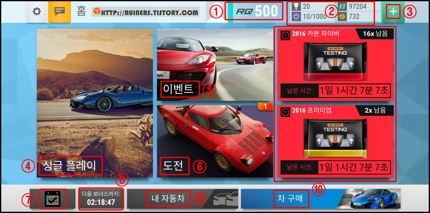 TOP DRIVES 게임 공략 - [게임 메뉴 설명]