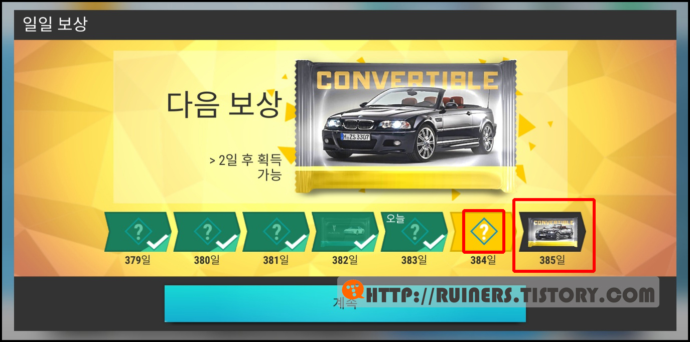 매일 접속하게 되면, 지급되는 리워드 입니다.