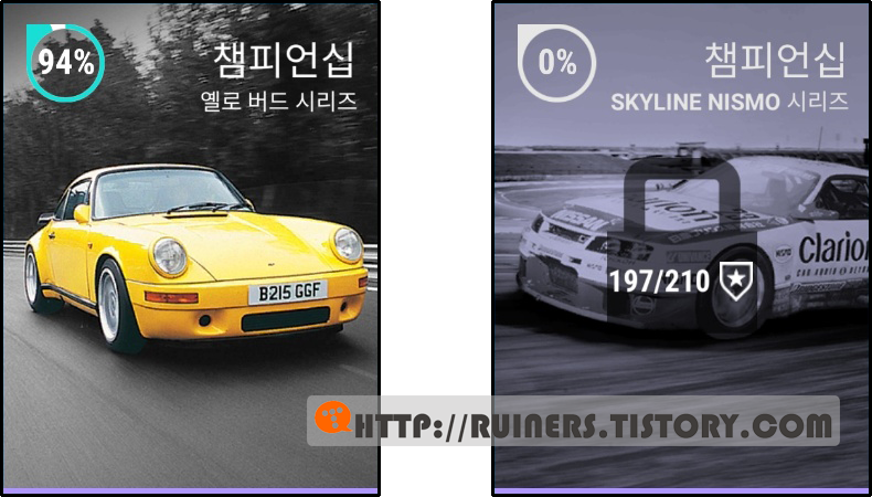 챔피언십 미션 진행중에 업그레이드 완료한 차량들은