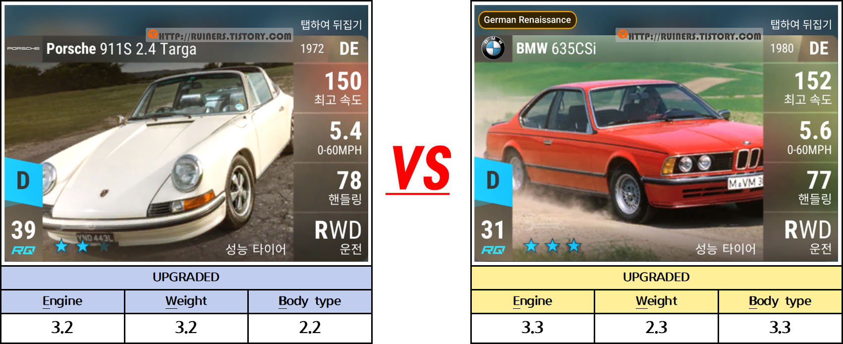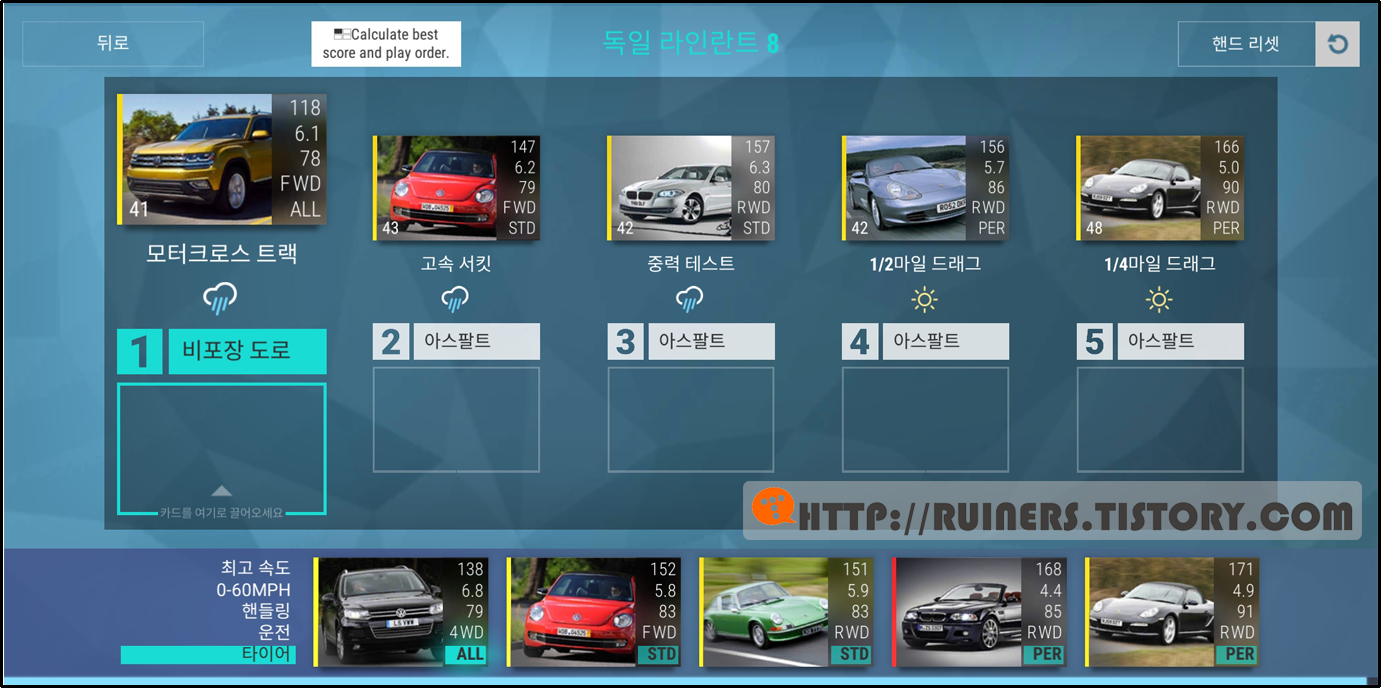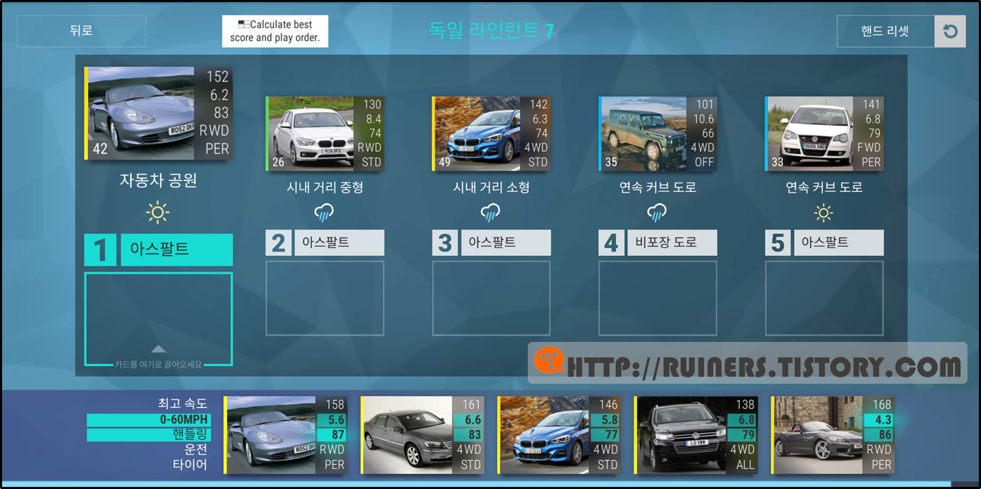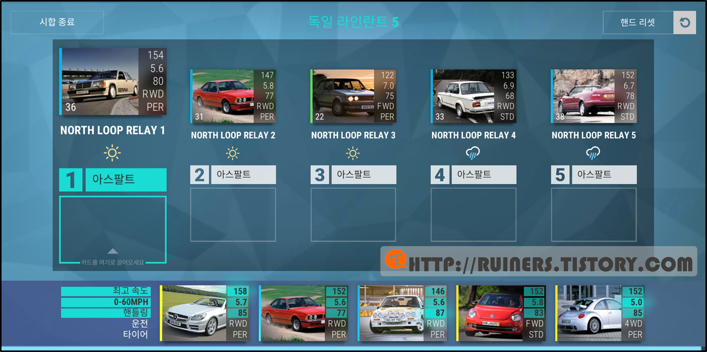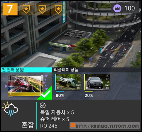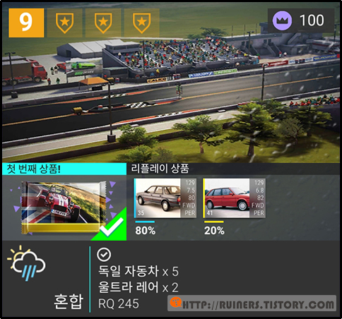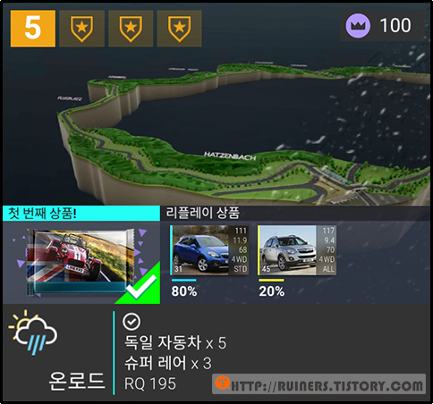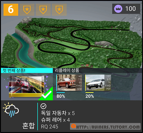 ※특이사항으로 3번째 플레이어 차량인 BMW 635CSi 가 패배하나, 별 ★ 3개 클리어가 가능합니다!!