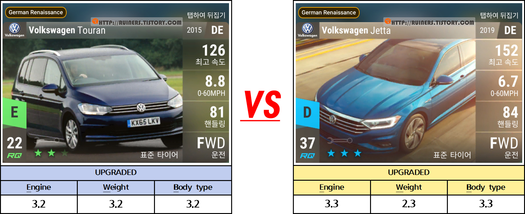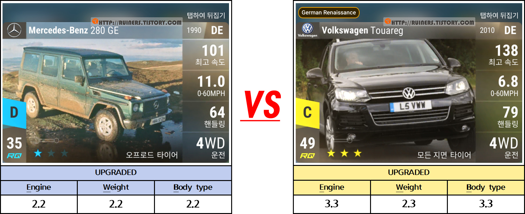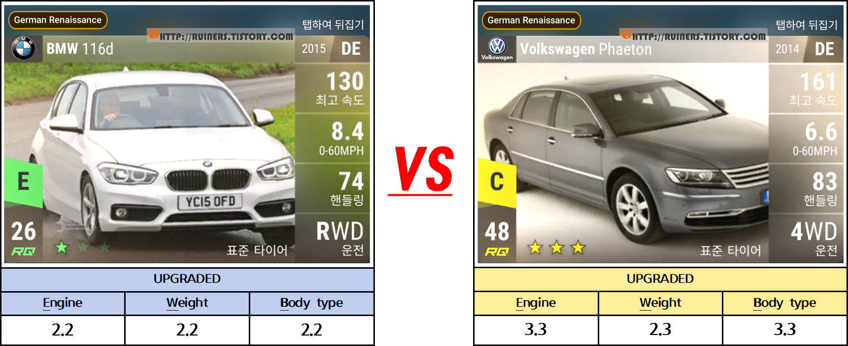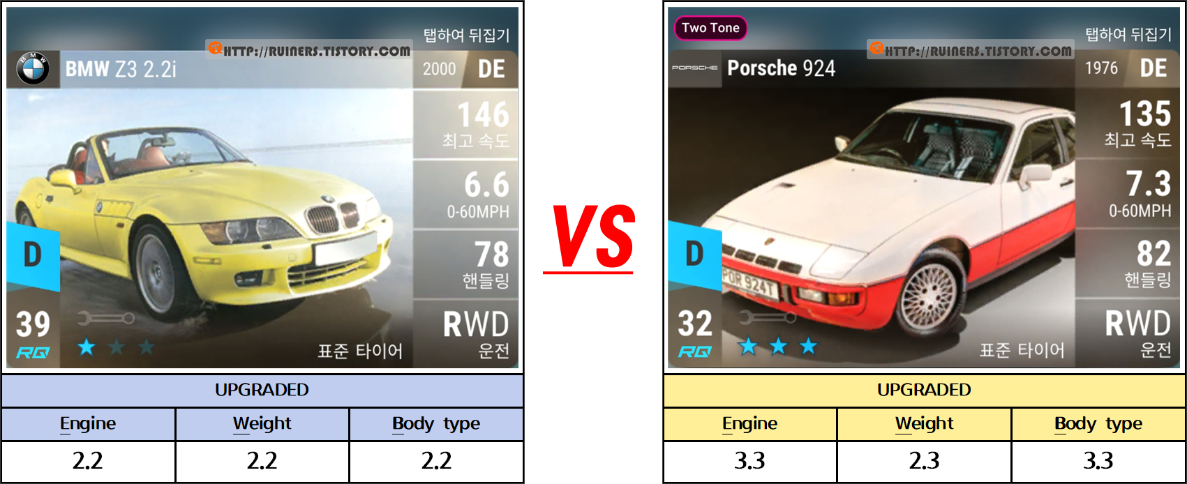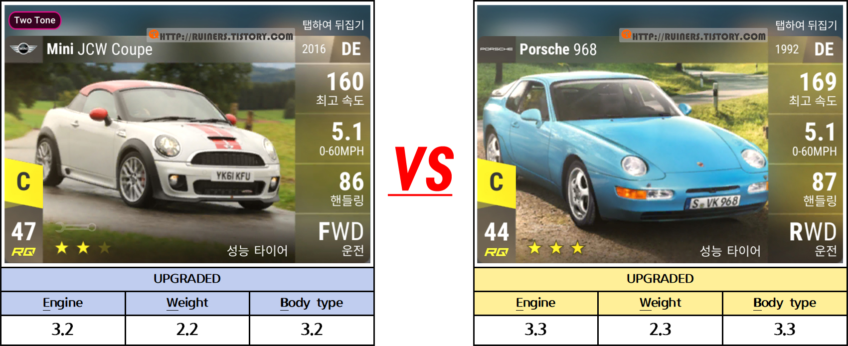 ※특이사항으로 3번째 플레이어 차량인 BMW 635CSi 가 패배하나, 별 ★ 3개 클리어가 가능합니다!!