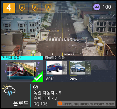 새로운 차량 선택하여, 클리어 해보시는 것도 추천드립니다~^^