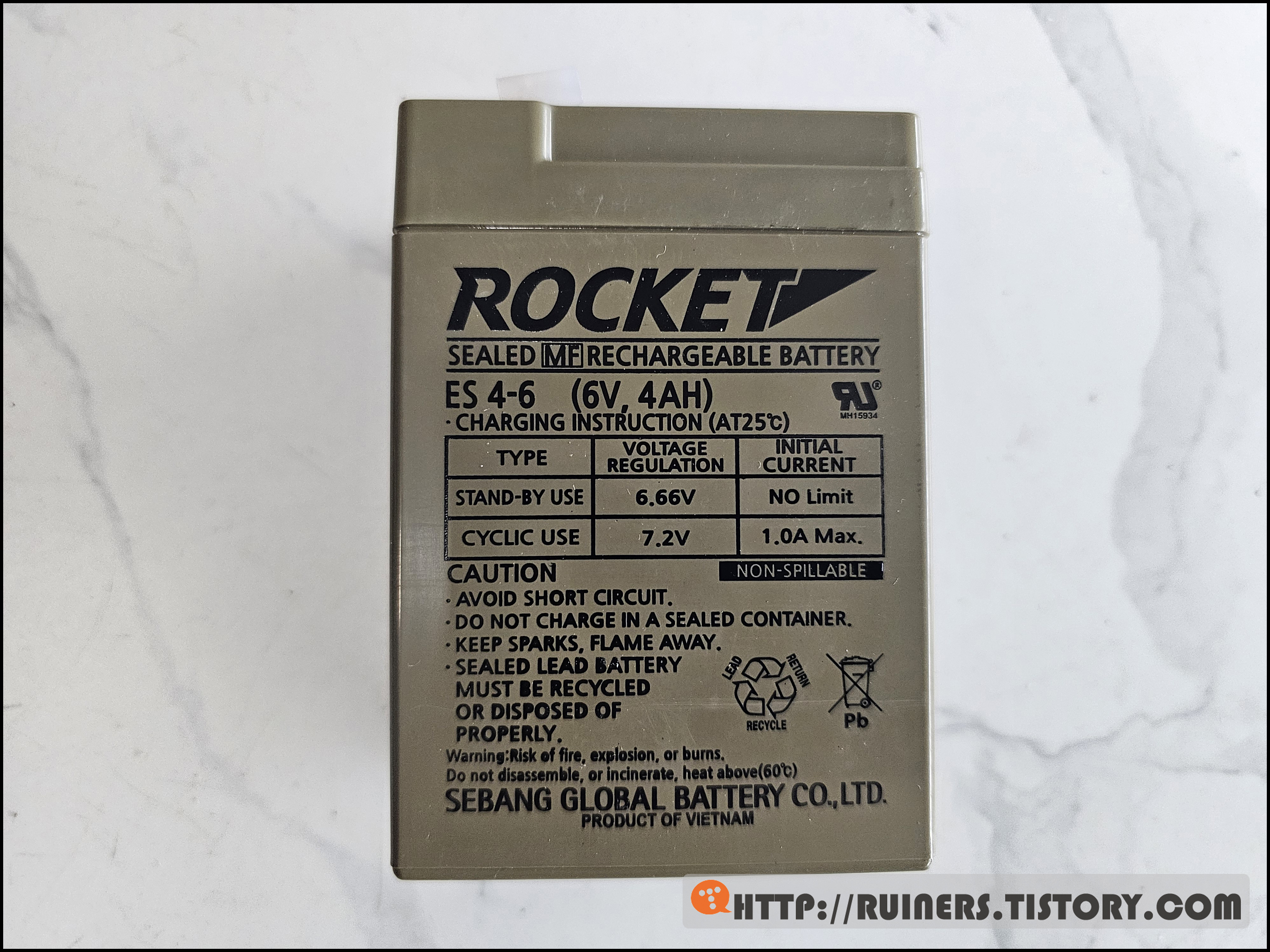 ▶ 제품사양 : 6V, 4AH (납축전지)