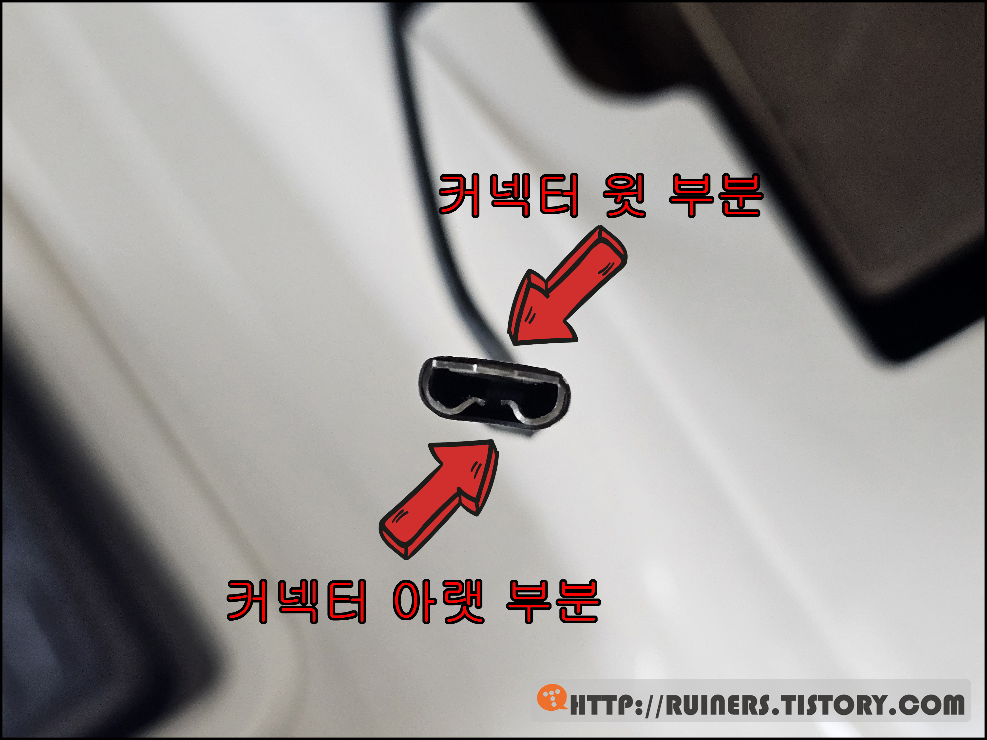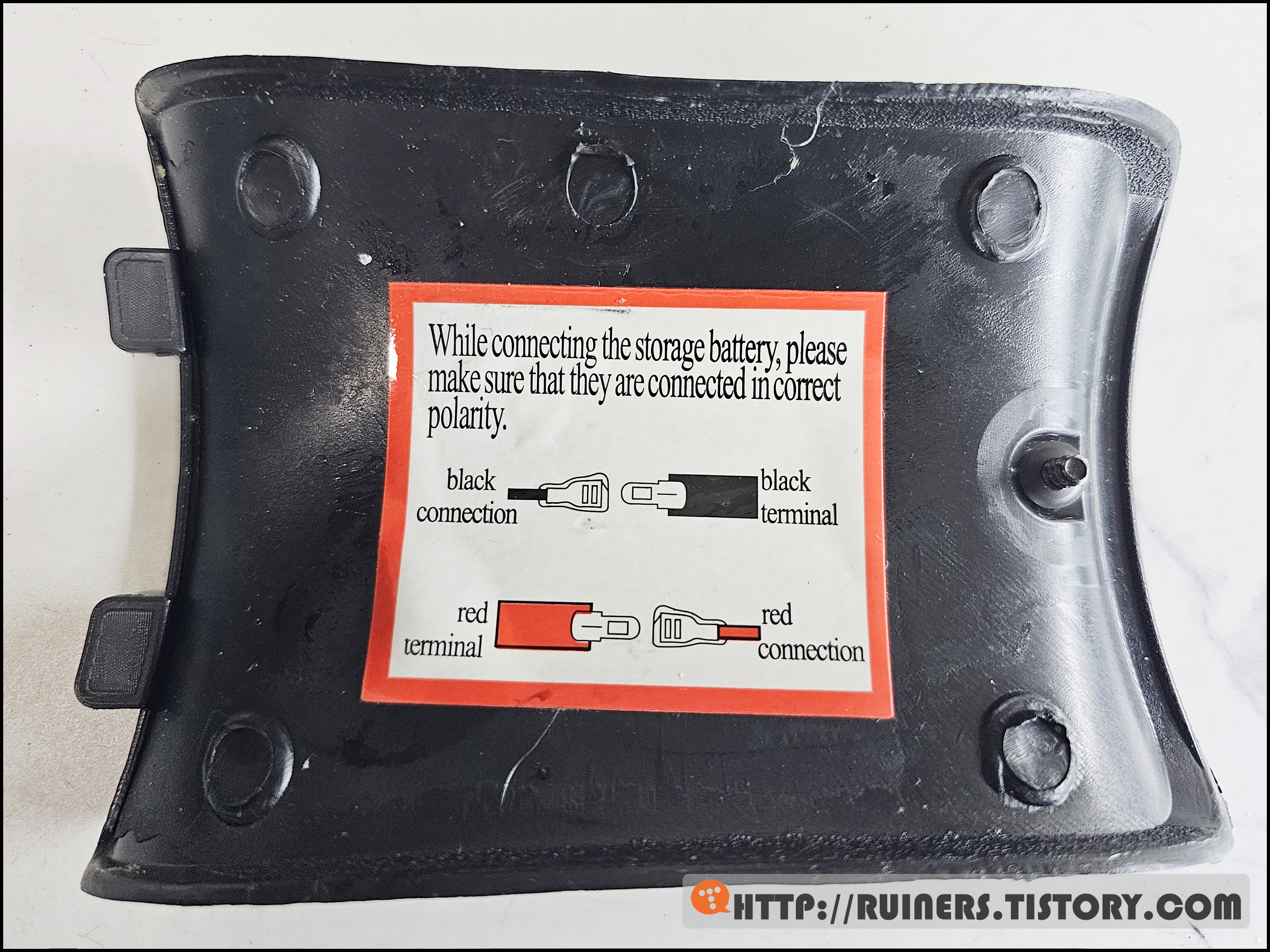 ② 커넥터와 배터리 연결 부위 극성 확인 후, 장착하기 ( 혹시나 하는 마음에 (+)빨간색 / (-)검정색 )