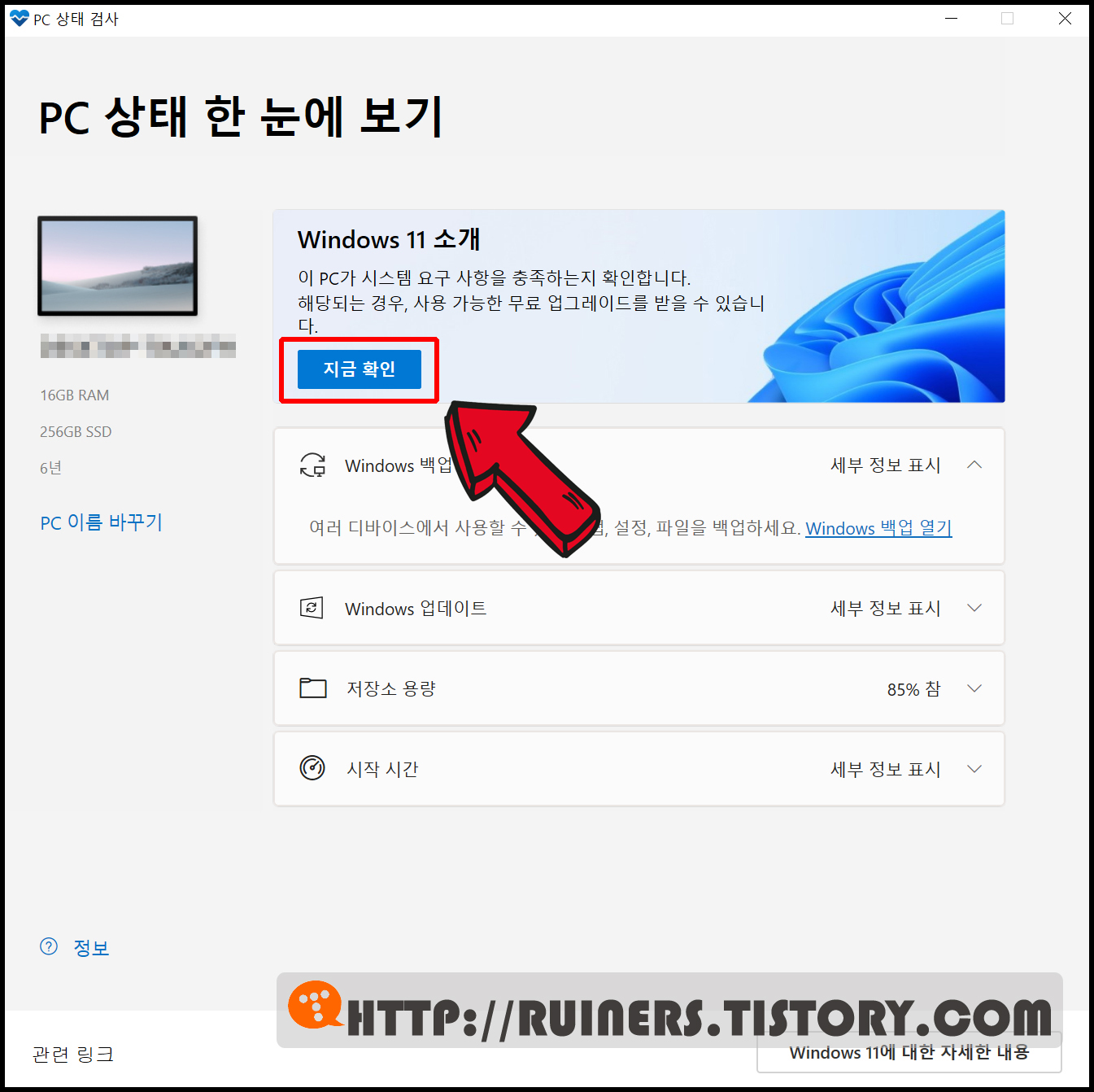 마소 공식 프로그램을 통한, Windows 11 가능 여/부 확인