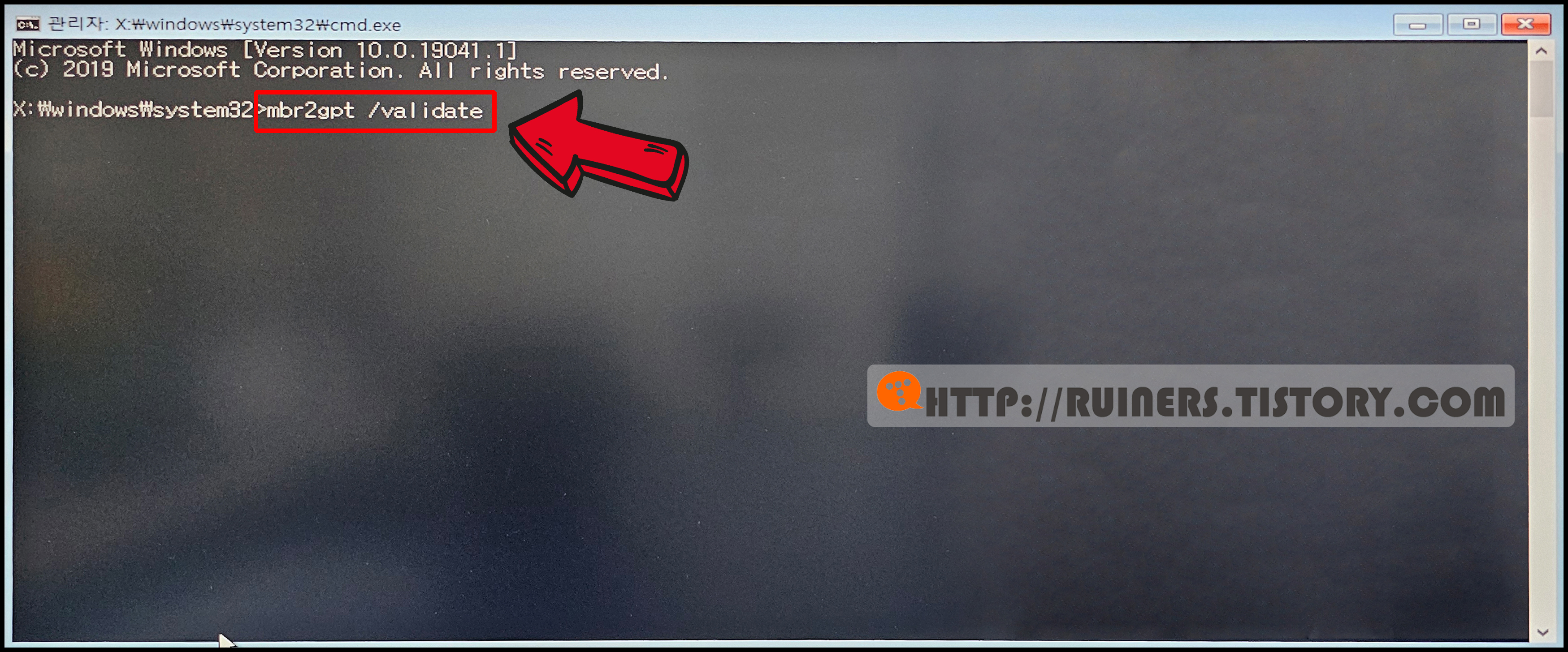 1) mbr2gpt /validate 입력 → Validation completed successfully 문구 확인