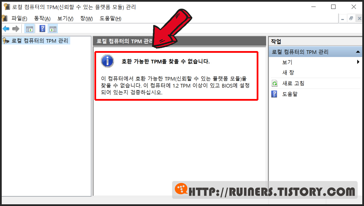 제 경우, "TPM 2.0 비활성" 상태 였습니다.