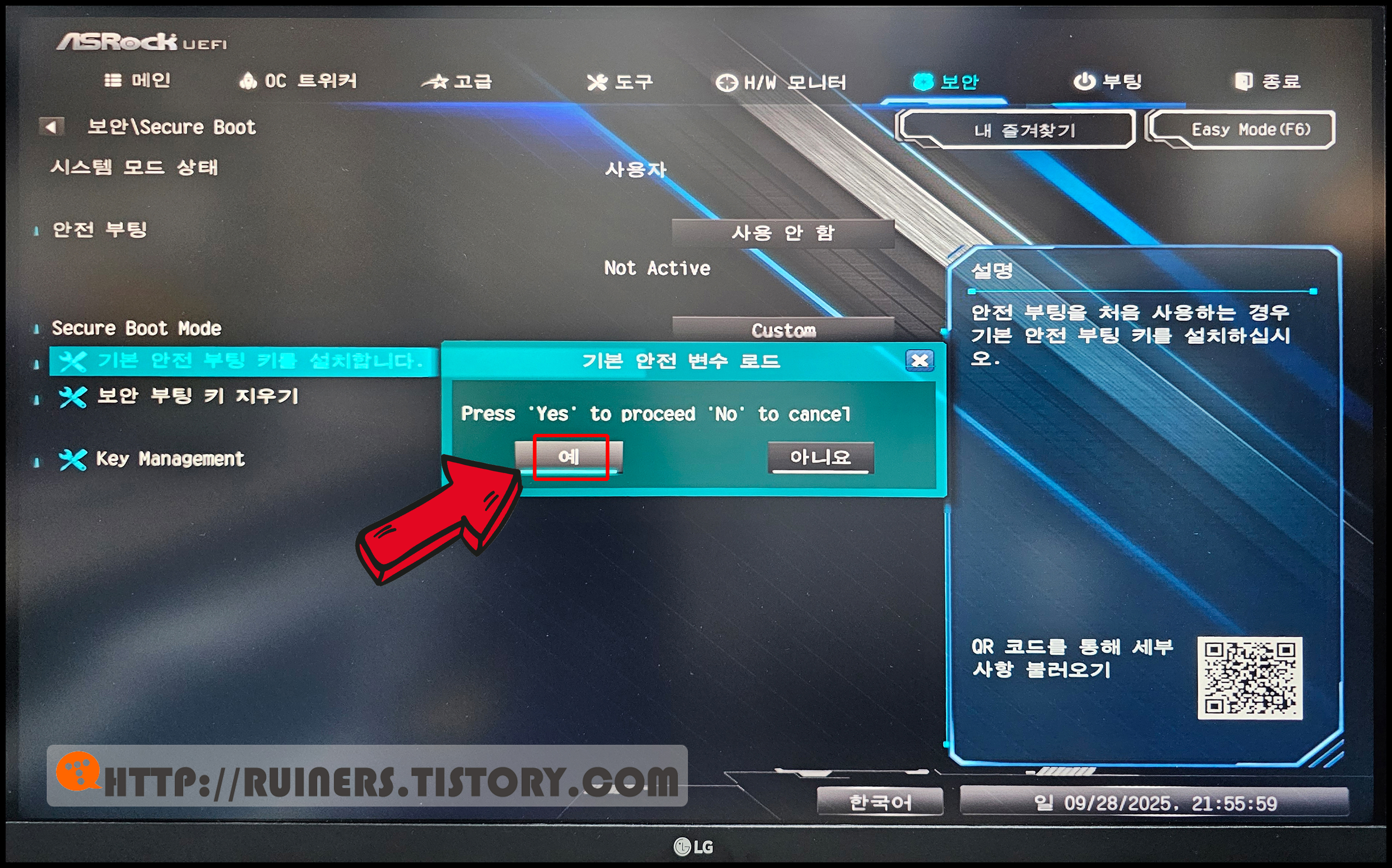 [ 안전 부팅 사용(활성화) 을 위해서는 여러 단계 진행이 필요합니다. ]