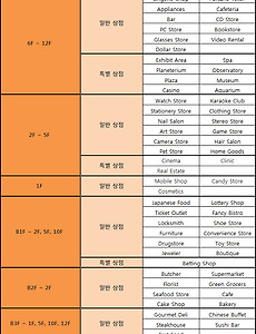 Mega Mall Story5 카이로소프트_개점 백화점 일기(Mega Mall Story) 공략 - 5. 상점 종류와 손님 [상점 종류] [손님] ● 카이로소프트_개점 백화점 일기(Mega Mall Story) 공략 - 1. 게임 기본 이해하기 ● 카이로소프트_개점 백화점 일기(Mega Mall Story) 공략 - 2. 게임에 유용한 정보들 ● 카이로소프트_개점 백화점 일기(Mega Mall Story) 공략 - 3. 상점 배치 방법 ● 카이로소프트_개점 백화점 일기(Mega Mall Story) 공략 - 4. 층간 상성과 상점 콤보 ● 카이로소프트_개점 백화점 일기(Mega Mall Story) 공략 - 5. 상점 종류와 손님 2012. 3. 10. 카이로소프트_개점 백화점 일기(Mega Mall Story) 공략 - 4. 층간 상성과 상점 콤보 [층간 상성] [상점 콤보] (클릭시 원래 크기 나옵니다.) ● 카이로소프트_개점 백화점 일기(Mega Mall Story) 공략 - 1. 게임 기본 이해하기 ● 카이로소프트_개점 백화점 일기(Mega Mall Story) 공략 - 2. 게임에 유용한 정보들 ● 카이로소프트_개점 백화점 일기(Mega Mall Story) 공략 - 3. 상점 배치 방법 ● 카이로소프트_개점 백화점 일기(Mega Mall Story) 공략 - 4. 층간 상성과 상점 콤보 ● 카이로소프트_개점 백화점 일기(Mega Mall Story) 공략 - 5. 상점 종류와 손님 2012. 3. 10. 카이로소프트_개점 백화점 일기(Mega Mall Story) 공략 - 3. 상점 배치 방법 [배치전에 알아두면 좋은 것들] 1. 건물을 지을 때 아래층 부터 꽉 채워 나간다는 식으로 지어 나가야 합니다. (처음부터 건물 위치가 가능함) 2. 제 배치에서 보면 상위층으로 가면서 중복 건물이 있는데요. 이 중복 건물들은 좀 뒤늦게 건축하세요. 그런데 뒤늦게 지으라고 했지만 백화점 랭크 없을 위해서는 어느정도는 지어야 합니다. (각 건물의 이용으로 인한 손님 얻기를 위해서 / 단, Facil 건물은 제외) 3. 건물을 지으면 하단에 fever가 올라가기 때문에 한번에 모든 건물을 건설하지 말고, fever가 되면 일단 건축을 멈추고, fever가 끝나면 다시 건축하는 식으로 하세요. 4.펌프킨(호박)상인이 매년 1월2주째 콤보 스크롤 파는데요. 이게 맵상에 건설이 되어있는 콤보라면 스크롤 판매를 하.. 2012. 3. 9. 카이로소프트_개점 백화점 일기(Mega Mall Story) 공략 - 2. 게임에 유용한 정보들 [단골] 손님을 클릭해 보면 자신이 제일 좋아하는 건물이 있는데요. 이 건물에 가서 상품을 구입하게 되면 단골손님이 됩니다. [상점 레벨업] 게임을 하다보면 상점에 레벨업 표시가 나오네요. 이때 상점을 누르면 아래와 같은 화면이 나옵니다. 그리고 포인트 분배가 나오는데요. 여러가지 해본 결과 홀수일 경우 = Stock(재고) 이 한개 더 많게 하구요. 짝수일 경우 = Quality(품질)과 Stock(재고) 를 1:1 비율로 올려주세요. 나중에 서비스 추가로 Stock 추가 되는 상점이 있는데요. 이후에는 Quality를 더 올려주도록 합니다. [상점 서비스 추가 갯수] 상점 마다 추가 할 수 았는 서비스의 갯수가 다릅니다. 3개, 4개, 5개 짜리가 있네요. 필요한 하트는 5 → 25 → 50 필요한 .. 2012. 3. 8. 카이로소프트_개점 백화점 일기(Mega Mall Story) 공략 - 1. 게임 기본 이해하기 이번 개점 백화점 일기는 영문으로도 플에이 하는데, 별문제가 없네요. 그리고....카이로소프트 게임 공략한것 중에서 제일 많이 플레이 해보고,,,난해한 것들이 많았던 게임이였네요.... 게임이 쉬운거 같은데, 알아두어야 할 것들이 참 많더군요. [게임 메뉴] 이전 게임들과 유사한 메뉴들로 배치가 되어 있습니다. [건설 = Build] Facil(편의), Store(가게), Special(특별) 이렇게 세가지 분류가 있습니다. 이 건물들이 등장하기 위해서는 투자를 하거나 손님을 자신이 좋아하는 건물에 가서 구매를 하게 하면 건물을 등장하게 할 수 있습니다. 그리고 백화점의 랭크업을 하면 생기는 건물도 있습니다. 이렇게 생긴 건물들은 그냥 지을 수도 있지만 일정 건물들은 화면 우측 상단에 있는 하트를 모아서.. 2012. 3. 7. 이전 1 다음 반응형